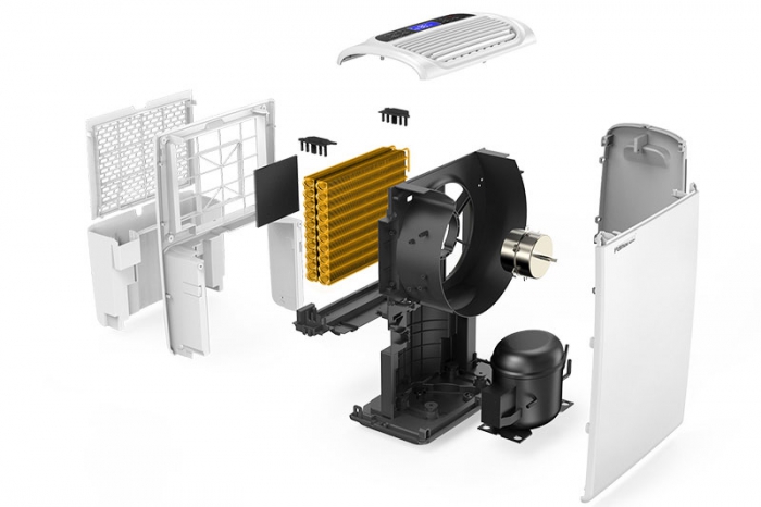 它首先采用的是輪轉式的A設計理念,可將室內潮濕的空氣大幅地吸入到機身內,然后通過機身內部核心部件——輪轉加熱器的作用,即可輕松循環往復地將潮濕空氣中水分析出,換之以干爽的空氣并最終通過位于機身上部的出風口源源不斷地排出,使室內能達到一個舒適的環境,晾曬的衣物也會變得更加干爽,從源頭去除濕氣。